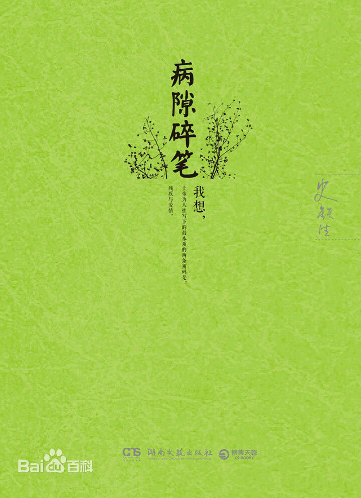 “生病也是生活体验之一种,甚或算得上一项别开生面的游历。生病的经验是一步步懂得满足。发烧了,才知道不发烧的日子多么清爽。咳嗽了,才体会不咳嗽的嗓子多么安详。刚坐上轮椅时,我老想,不能直立行走岂非把人的特点丢了?便觉天昏地暗。等到又生出褥疮,一连数日只能歪七扭八地躺着,才看见端坐的日子其实多么晴朗。后来又患‘尿毒症’,经常昏昏然不能思想,就更加怀念起往日时光,终于醒悟:其实每时每刻我们都是幸运的,因为任何灾难的前面都可能再加一个‘更’字。”