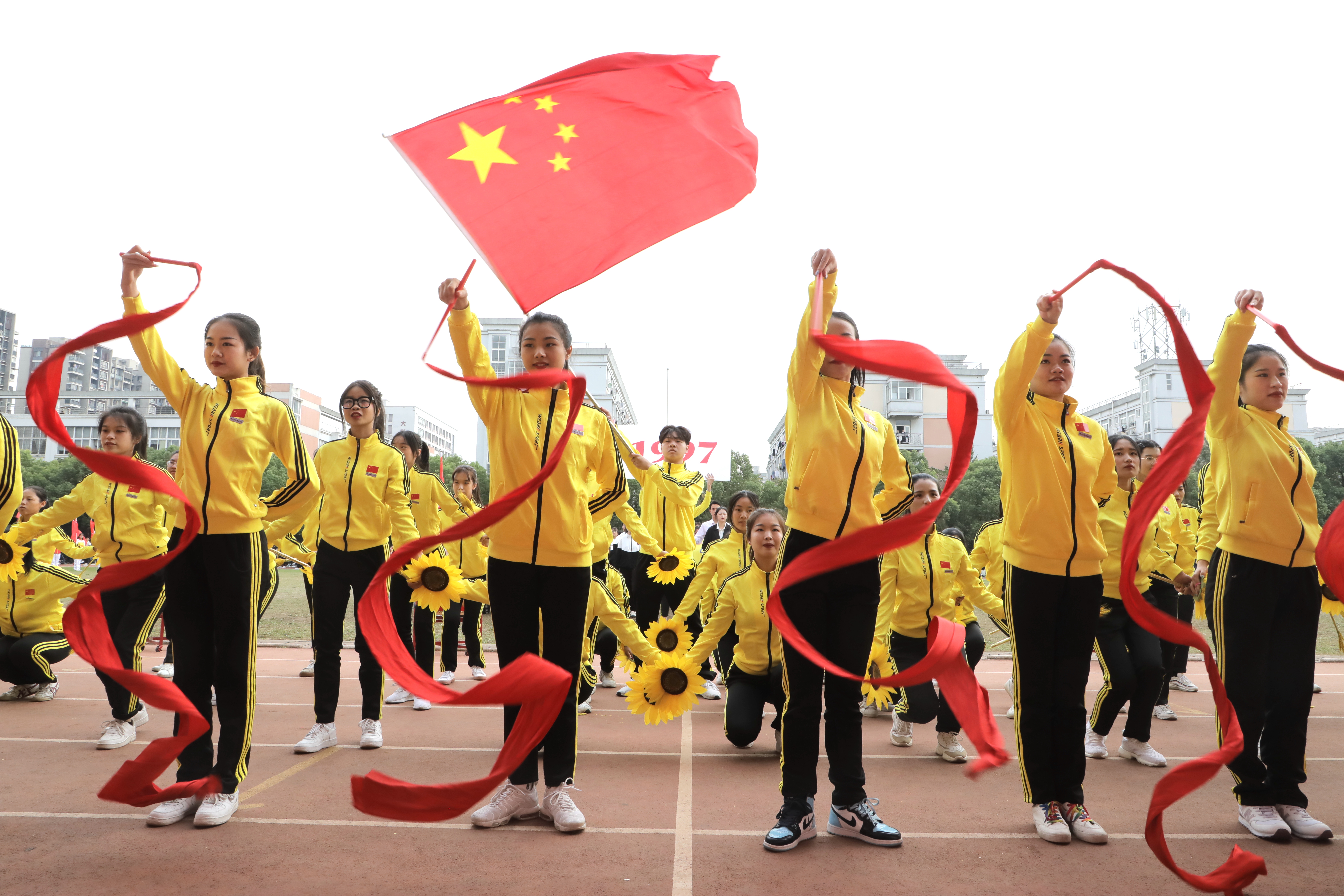 10月17—18日,学校举行了第16届校运动会中,运动会充满了爱国情怀,突显时代主题。如入场式环节,文化管理系展现了“红色梦想”,体现守初心、担使命的时代精神;舞蹈系展示了民族团结、文旅融合;影视技术系表达了争做新时代红色影视追梦人愿望;音乐系通过音乐节拍回顾新中国成立重要节点;美术系致敬中国共产党带领中国人民历经磨难走向新时代;戏剧系展现了浙艺人传承中华优秀传统文化的决心和担当。如团体操环节,各系将新中国成立70周年主题融入团体操编排,通过国旗、红飘带、五角星、向日葵、体操球等元素融入,呈现了一场别样的主题展示。如音乐系团体操《天耀中华》,用声乐、舞蹈、打击乐祝福新中国成立70周年,展现了“不忘初心、牢记使命”的责任担当。舞蹈系以学生技能展示出五角星闪闪发亮,体现浙艺精神代代相传,一颗红心向党走,少年有梦在远方。