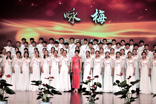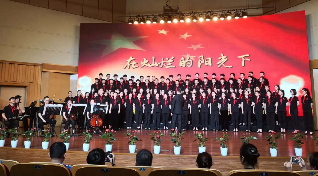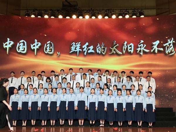文化管理系合唱团带来的是《中国,中国,鲜红的太阳永不落》。他们坚定有力的歌声抒发着爱国情感,祖国是华夏儿女以生命铸就的太阳,照耀在心中永不坠落。基础教学部、社会科学部和继续教育学院联合合唱团带来的是改编版《年轻的朋友来相会》,这支队伍中有勤劳的60年代、浪漫的70年代、时尚的80年代,他们在朗诵中追忆时代变迁,在歌声里抒发建功新时代壮志。行政、教辅部门合唱团的曲目《我和我的祖国》,著名歌唱家陈芬芳的领唱收获了全场热烈的掌声,熟悉的旋律响起,观众席很多人跟着轻轻地应和,歌声回荡在每一位观众心中。