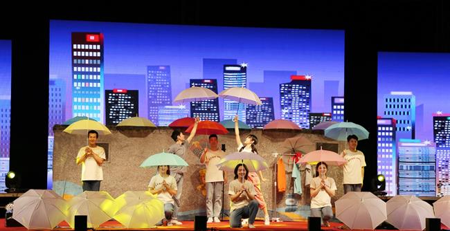 戏剧系表演艺术专业学生现场表演情景剧《江南小镇》、RAP《庆功酒》、小品《“摊”上事儿》、表演唱《小孩的星星》、朗诵《最美逆行者》、快板《别样风采看浙江》等。表演的音乐韵律感极强,舞蹈轻盈、富有诗意,如行云流水,美得令人窒息,目不暇接。同学们以多元艺术语汇,讲述精彩中国故事,礼赞新时代,颂扬新征程,细微动人的艺术表现深深感染了现场观众。戏曲学院学生表演的传统越剧折子戏《白蛇传·断桥》《梁祝·十八相送》《梁祝·回十八》深受当地民众的喜爱,同学们的唱功让当地群众惊叹。小品《“摊”上事儿》从小视角展现了“00后”的青春风采和精神风貌,观众直呼“真有味道!”