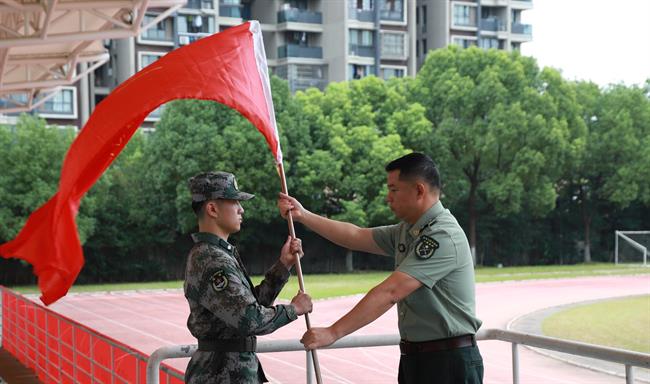 学工部副部长吴颖宣读学生军训团干部及教官名单。学工部副部长张志扬为军训团授旗。沈军甫、吴颖、张志扬、各系书记现场为全体教官颁发聘书。教官们现场进行队列展示。