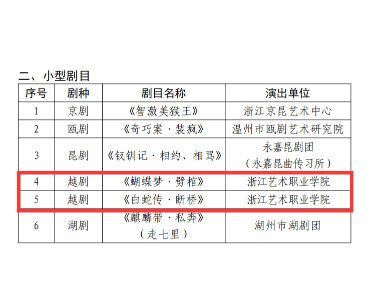 浙艺两个剧目入选“浙江省第二批经典保留剧目”
