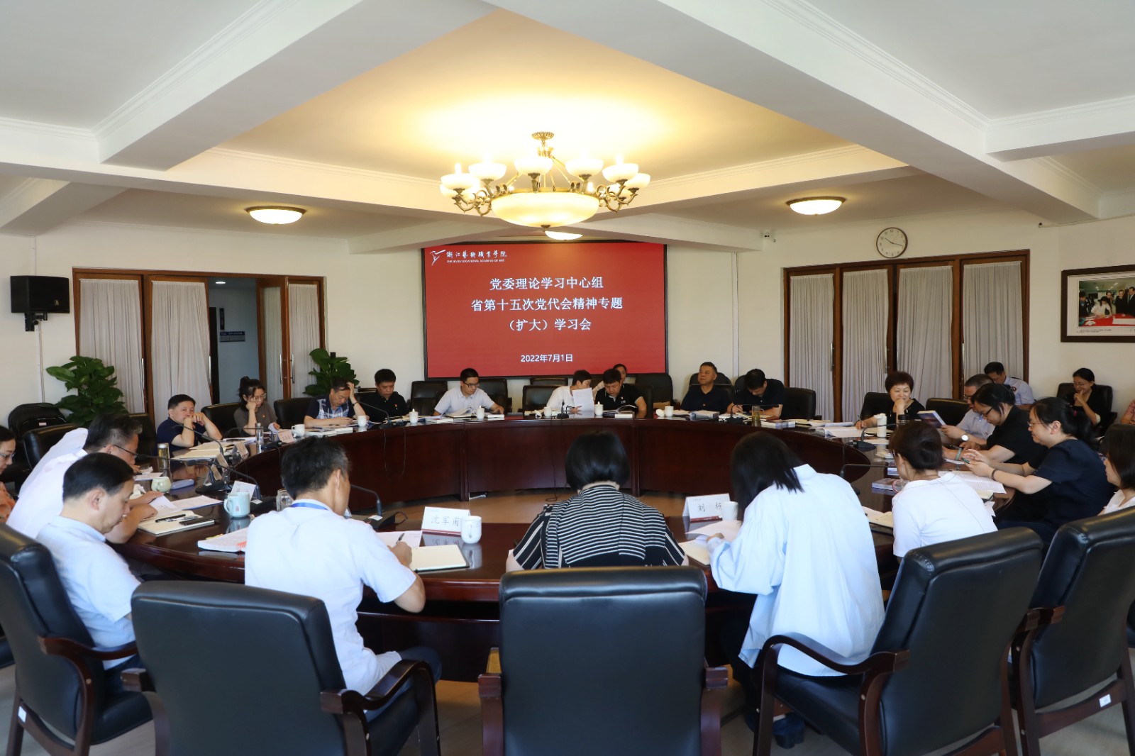 院长、党委副书记黄杭娟在发言中表示,省十五次党代会的报告让人深受鼓舞,倍感振奋。我们要进一步深刻领会和准确把握省第十五次党代会的精神实质,进一步深刻理解加强党的全面领导和全面从严治党的重大部署,同时要把学习理解党代会精神与职业教育发展、与如何推进我校在艺术教育上的先行结合起来,瞄准我校高水平建设高质量发展的具体目标,创造性地落实落细,出人才出作品,为我省“两个先行”培养更多的高素质文化艺术的专门人才,助力新时代文化高地建设、全域文化繁荣和全民精神富有。
