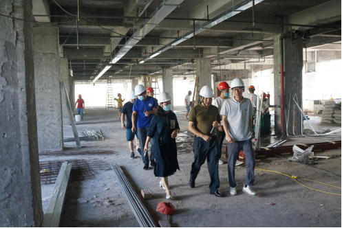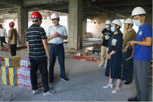 薛亮感谢烈日下施工的工作人员,提醒工人们在保证质量前提下保障施工进度,并做好自我防护防暑降温工作。他强调,要继续发扬吃苦耐劳精神,统筹资源要素,科学安排施工,全力服务好项目建设,严格按照既定目标和时间节点,有力有序、高质高效推进,确保新学期开学前向全校师生交出一份满意的答卷。