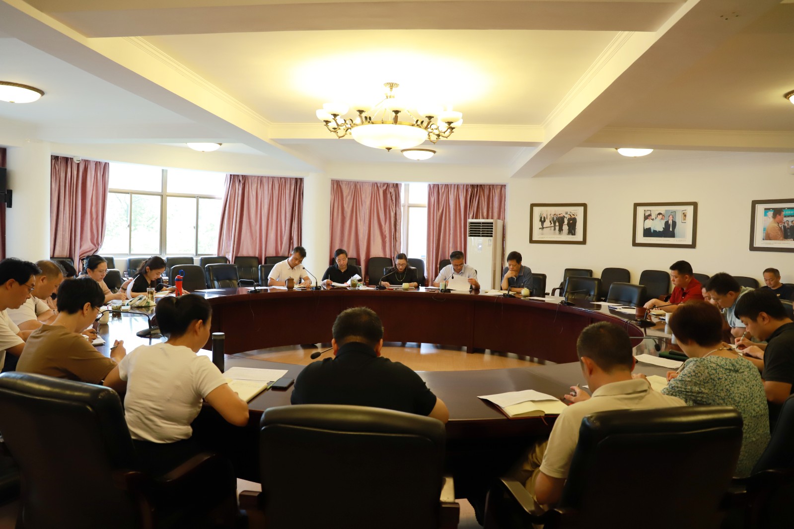 疫情防控工作会上,疫情防控领导小组办公室成员研究了开学报到疫情防控具体事宜,对校园安全、疫情防控检查路线和应急演练方案进行了讨论。
