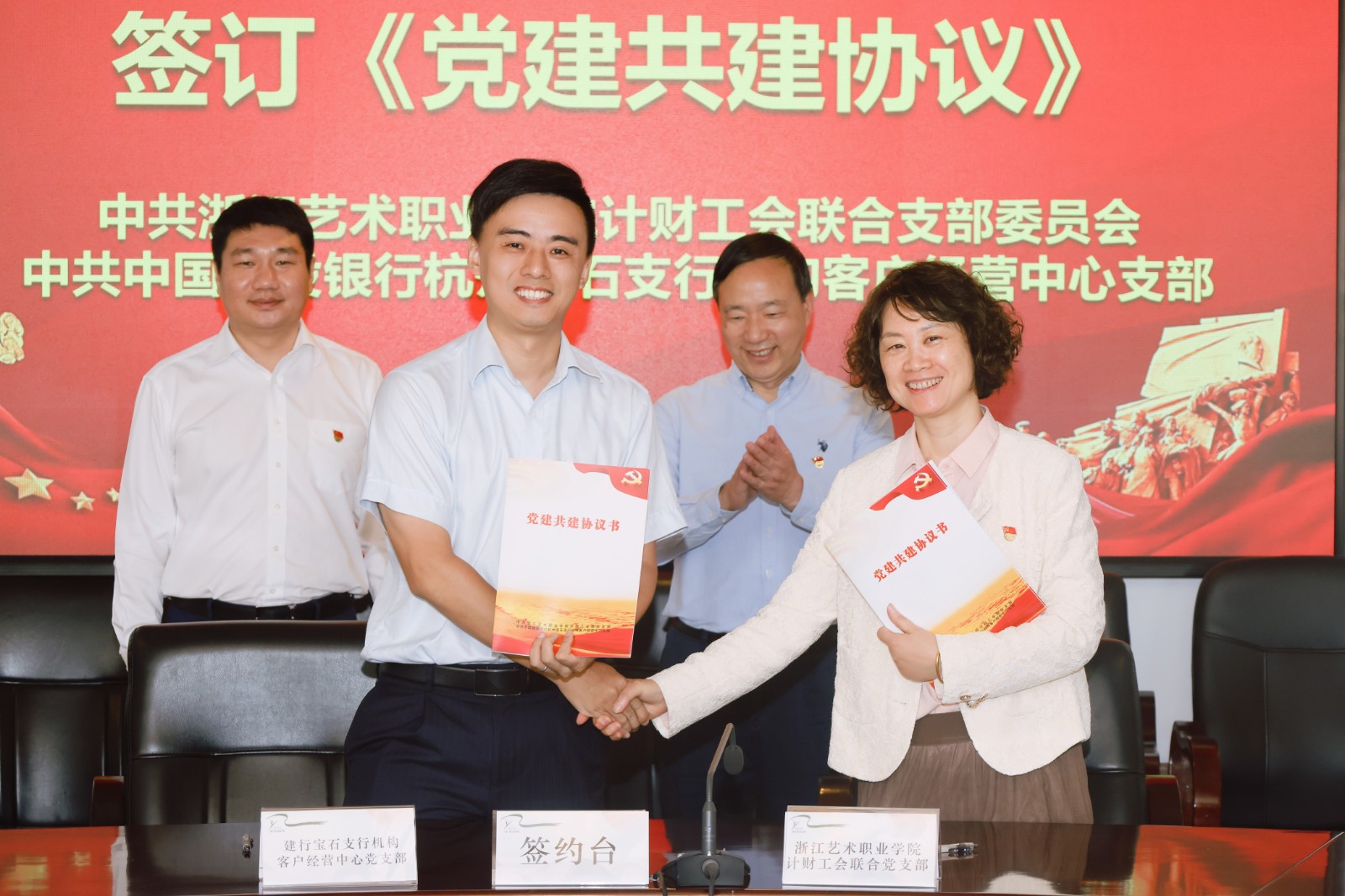 党建聚合力——计财工会联合党支部与中国建设银行杭州宝石支行机构客户经营中心党支部签订党建共建协议