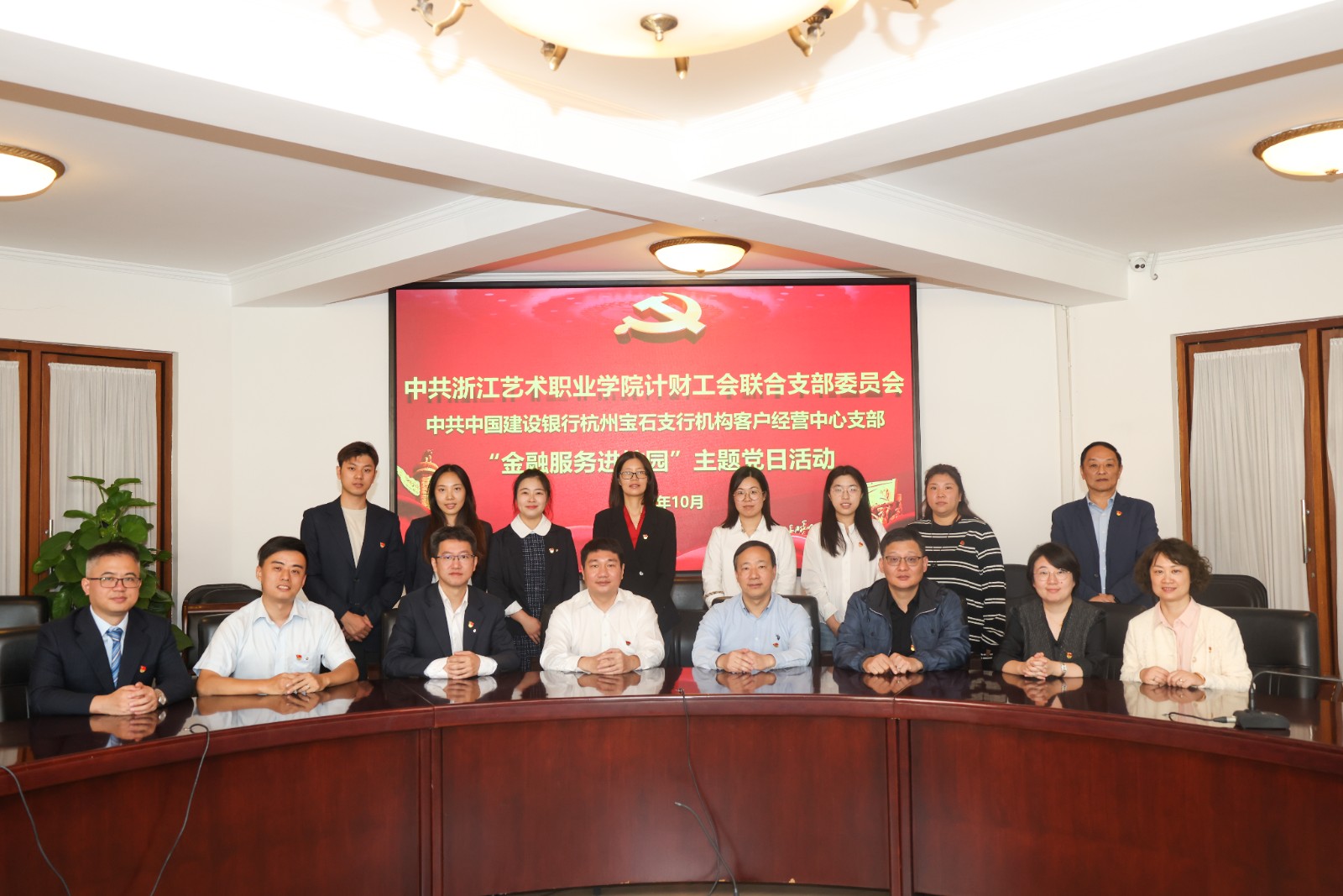为全面推进基层党组织建设,计财工会联合党支部与中国建设银行杭州宝石支行开展合作交流,积极探索“银行—高校党建共建促进”的新模式,10月30日,校党委副书记夏开堂,建行宝石支行党总支书记、副行长(主持工作)童璟出席签约仪式,共建双方党支部成员参与。