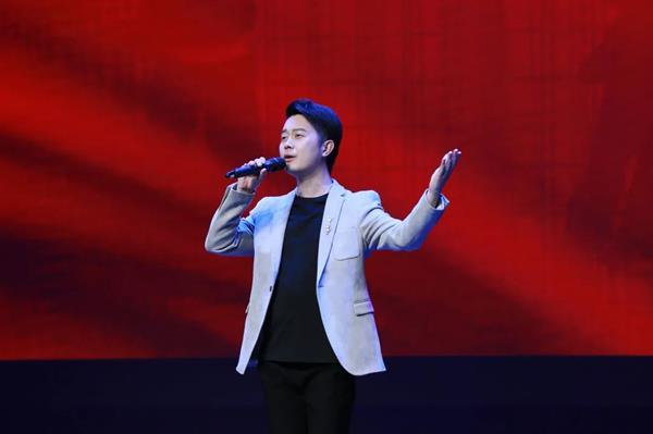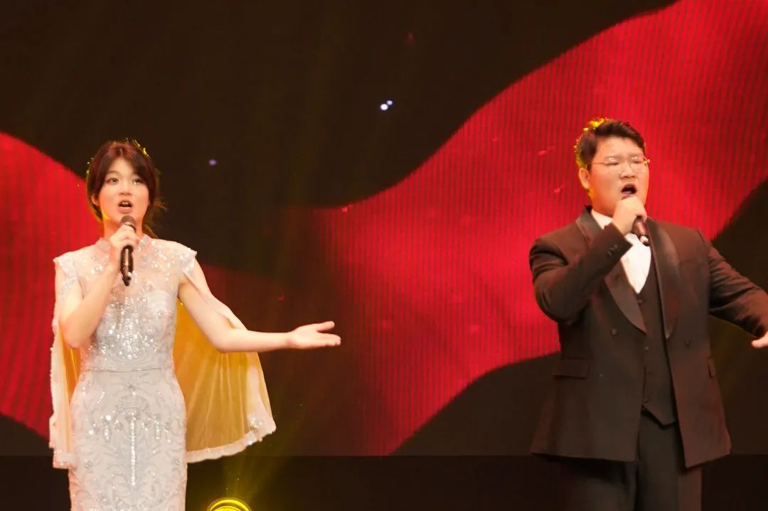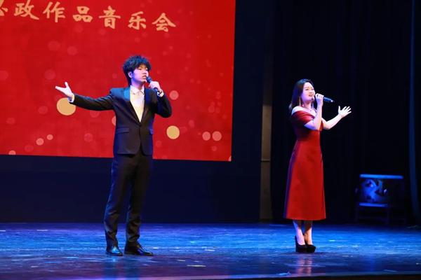 晚上七点,音乐会在浙艺青年学子徐士源、陈幸儿演唱的序曲《盛世闪耀中国红》中拉开帷幕。歌曲以极具代表性的中国红为主题,讴歌了五千年中华文明,赞美了浙江人民紧跟伟大复兴领航人踔厉笃行的信心与决心,描绘了一幅盛世中华的时代风貌。自古以来,中华民族就有崇尚红色的习俗,它记载着中国人民的心路历程,经过世代承启、深化和扬弃,其传统精髓逐渐演变为中国文化的底色,它象征着中国人民热忱奋进,忠诚勇敢,团结友爱的民族品格。这是一首激情澎湃的盛世赞歌,激昂的歌声深深打动了台下观看演出的浙江警察学院的学生们,他们报以持久而热烈的掌声。