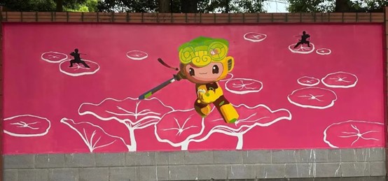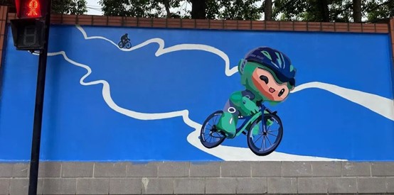 同学们将杭州亚运会吉祥物和杭州地标相结合,设计了墙绘草图方案,表现出独特的杭州韵味,展现了设计学子扎实的专业功底。