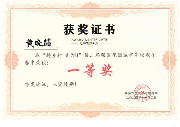 “非常高兴获得此次比赛的第一名,感谢评委和观众对我的认可。比赛现场的环境和氛围都非常好,能够来到常山和这么多高手同台竞技,我收获颇多。”黄晓喆说。