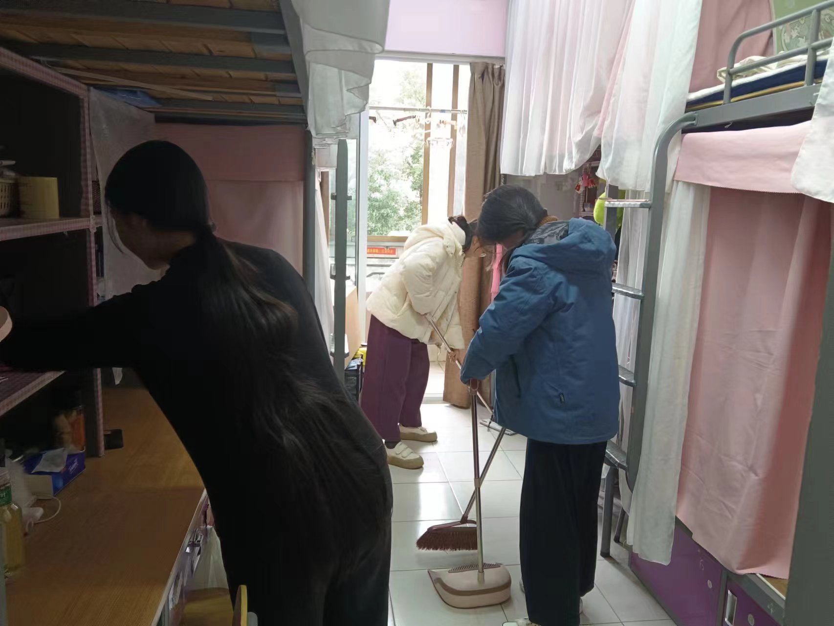 人勤春来早,奋进正当时。学工部开展“相约春天 待美好”开学第一课主题教育活动,同学们以劳动教育的形式开启新学期“开学第一课”,大家拿起扫帚、拖把、抹布等,分别对教室、公寓、走廊等地进行全面大清扫。同学们干劲十足,能量满满,开启“热辣滚烫”的新学期。
