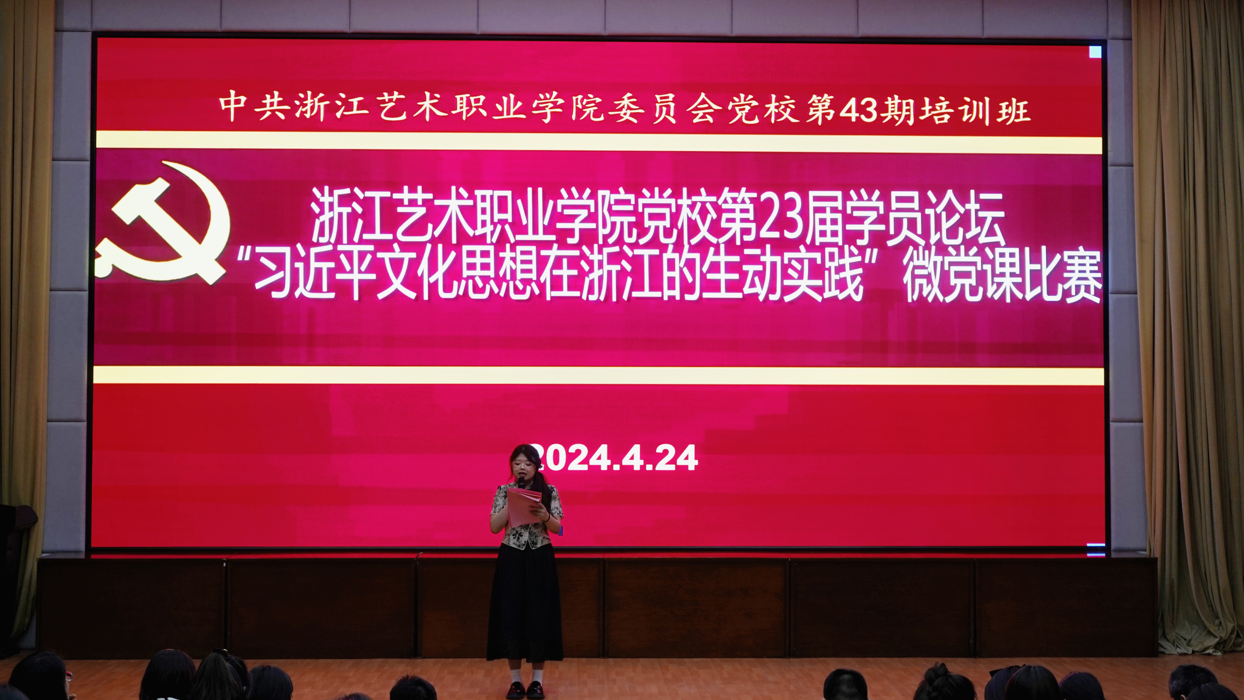 比赛中,12名选手紧紧围绕“习近平文化思想在浙江的生动实践”这一主题,以小人物承载大情怀、小话题阐释大主题、小故事阐述大道理的方式,结合PPT、图文、短视频等形式,用慷慨激昂的宣讲、娓娓道来的深情,展现了新一代浙艺青年牢记嘱托、感恩奋进、践行发展的使命担当,赢得在场观众的阵阵掌声。周应中从比赛很精彩、很感动、很期待三个方面进行点评,他高度评价了此次微型党课比赛主题聚焦又丰富、思路既清晰又活泼、视角既年轻专业,感动于参赛团队与保障团队所付出的辛苦努力,也从进一步创新导入策略、清晰叙事线索提出了期许,鼓励党校学员继续讲好浙江优秀传统文化创造性转化、创新性发展的故事,讲好古往今来浙江文化与世界文明交流互鉴、共同繁荣的故事,真正“习近平文化思想在浙江的生动实践”真正内化于心,外化于行。