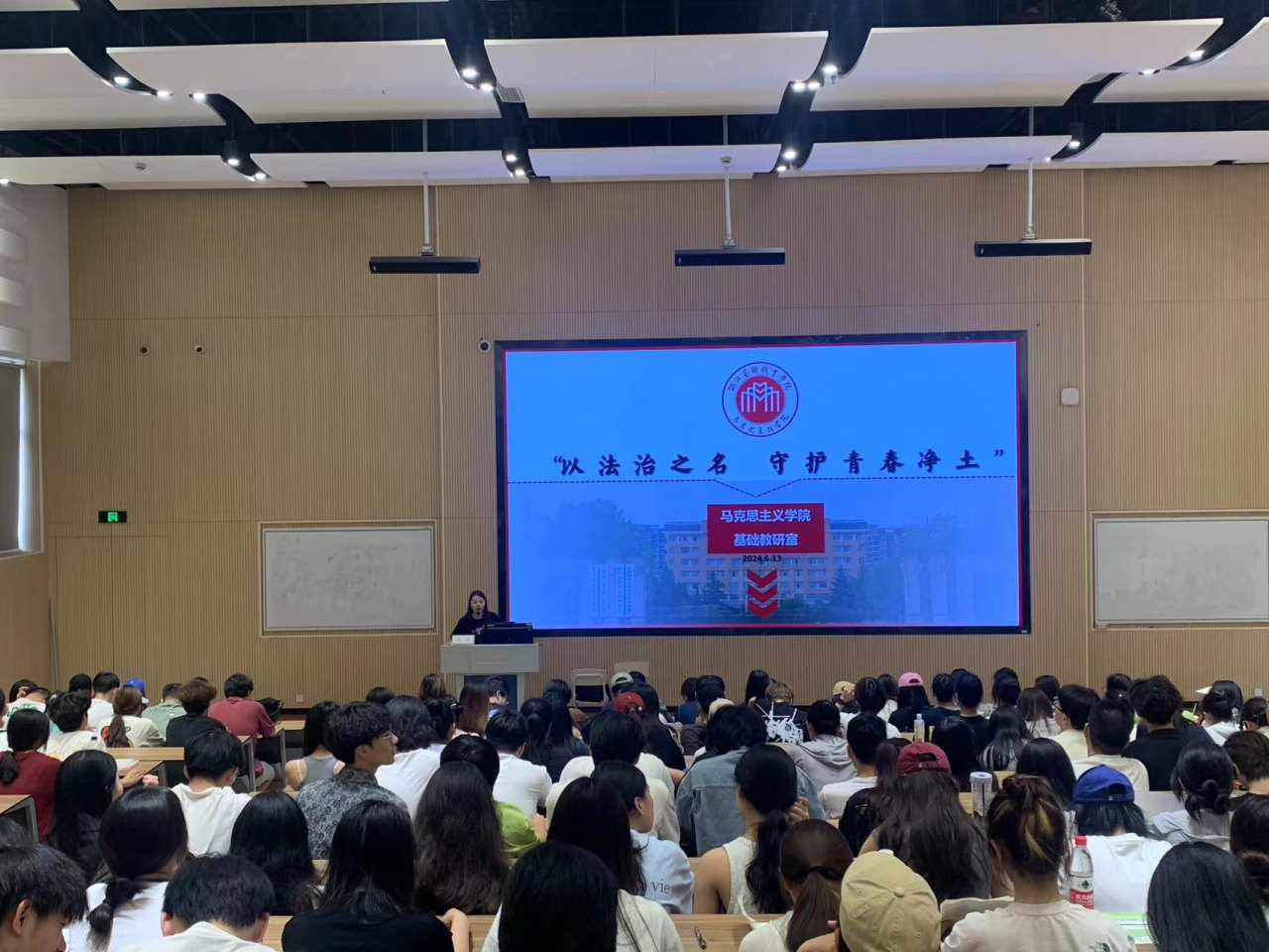 为培养学生法治思维,提升法治素养,提高学生尊法学法守法用法的能力,6月13日下午,马克思主义学院在校阶梯二教室举办“以法治之名 守护青春净土”法治讲座。浙江泽大律师事务所合伙人金文超、浙江六和律师事务所律师费斐为同学们带来了一堂生动鲜活的“法治教育课”。