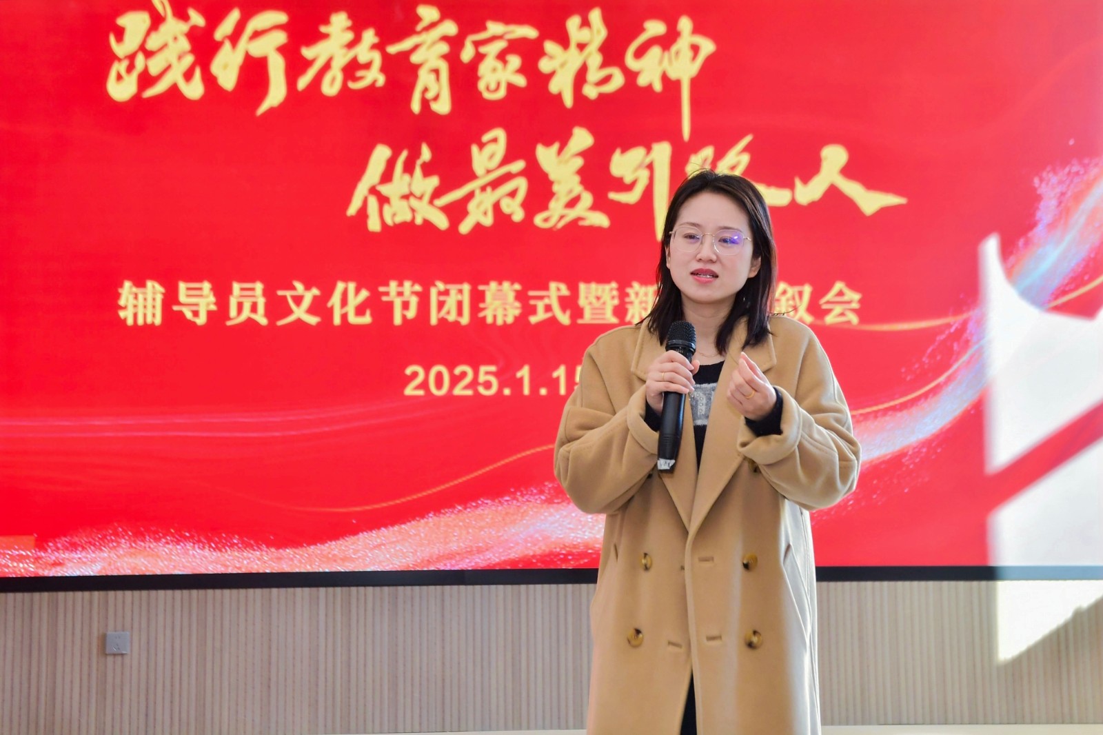 1月15日,我校在教学楼小报告厅举办“践行教育家精神 做最美引路人”辅导员文化节闭幕式暨新春茶叙会活动。